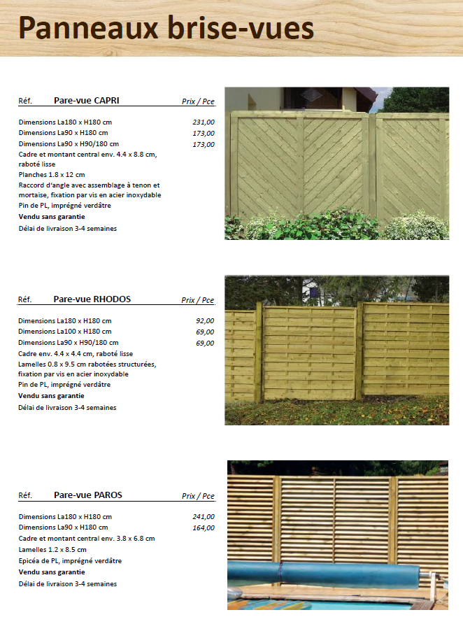 Retrouvez tous les éléments nécessaires à la réalisation de votre projet en bois imprégné : barrière, bardage, pergola, terrasse, pont, retenu de terrain, parois, etc.